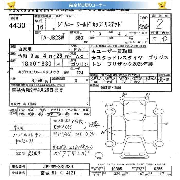 Год выпуска2004 Пробег 181 000 км КузовJB23W Комплектация WORLD CUP LIMITED