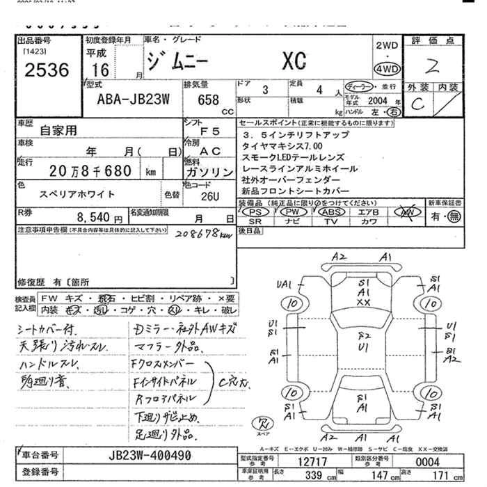 Год выпуска2004 Пробег 209 000 км КузовABA-JB23W КомплектацияXC 4WD
