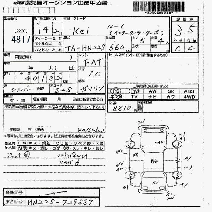 SUZUKI KEI 2002 г., лот № 4817