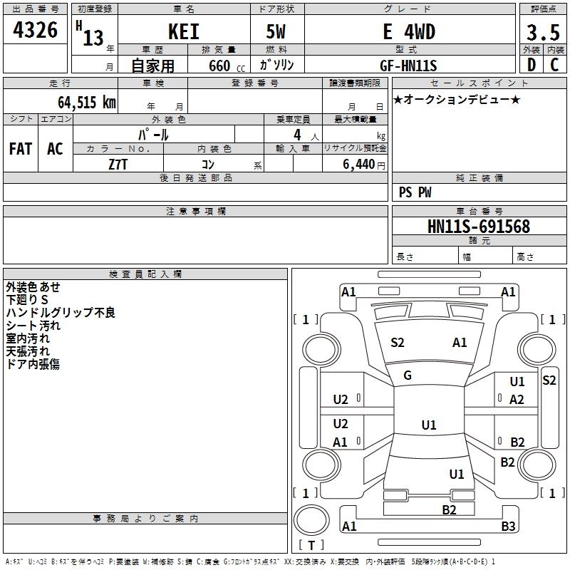SUZUKI KEI 2001 г., лот № 4326