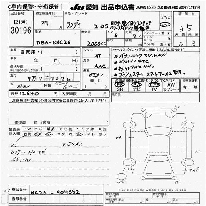 Статус выставлен на аукцион Лот 30196 Аукцион JU Aichi Дата аукциона 19.03.2026