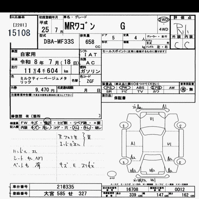 SUZUKI MRWAGON 2013 г., лот № 15108