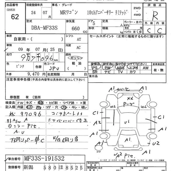 SUZUKI MRWAGON 2012 г., лот № 62