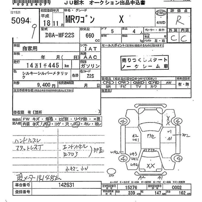 Год выпуска2006 Пробег 141 000 км КузовMF22S КомплектацияX