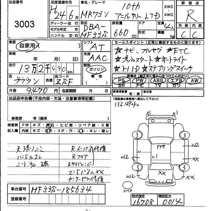 SUZUKI MRWAGON 2012 г., лот № 3003