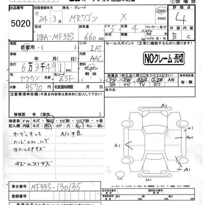 SUZUKI MRWAGON 2012 г., лот № 5020
