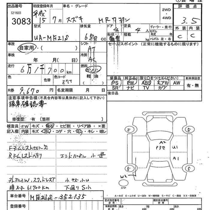 Год выпуска2003 Пробег 62 000 км КузовMF21S