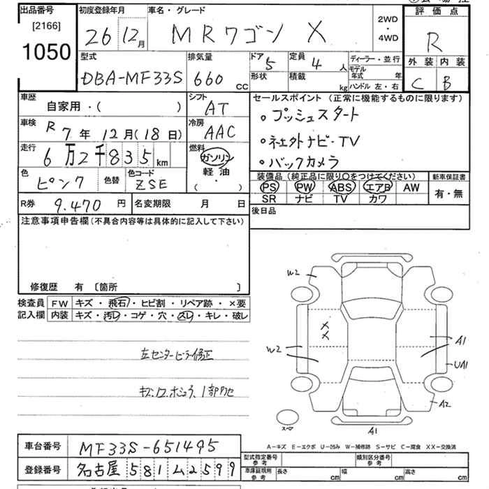 SUZUKI MRWAGON 2014 г., лот № 1050