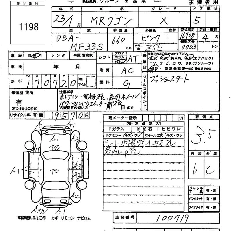 SUZUKI MRWAGON 2011 г., лот № 1198
