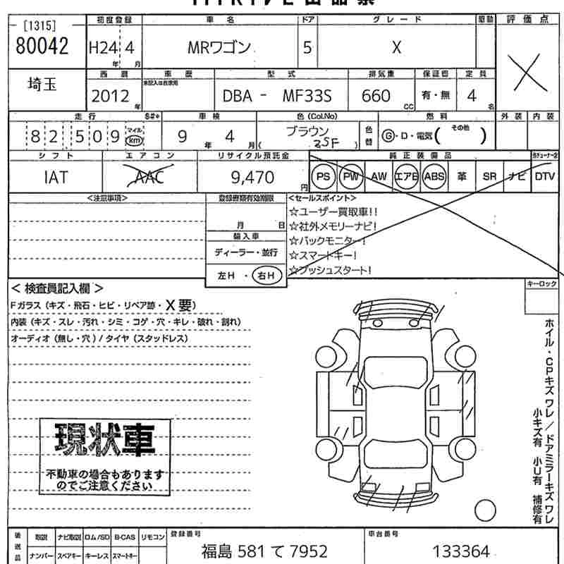 SUZUKI MRWAGON 2012 г., лот № 80042