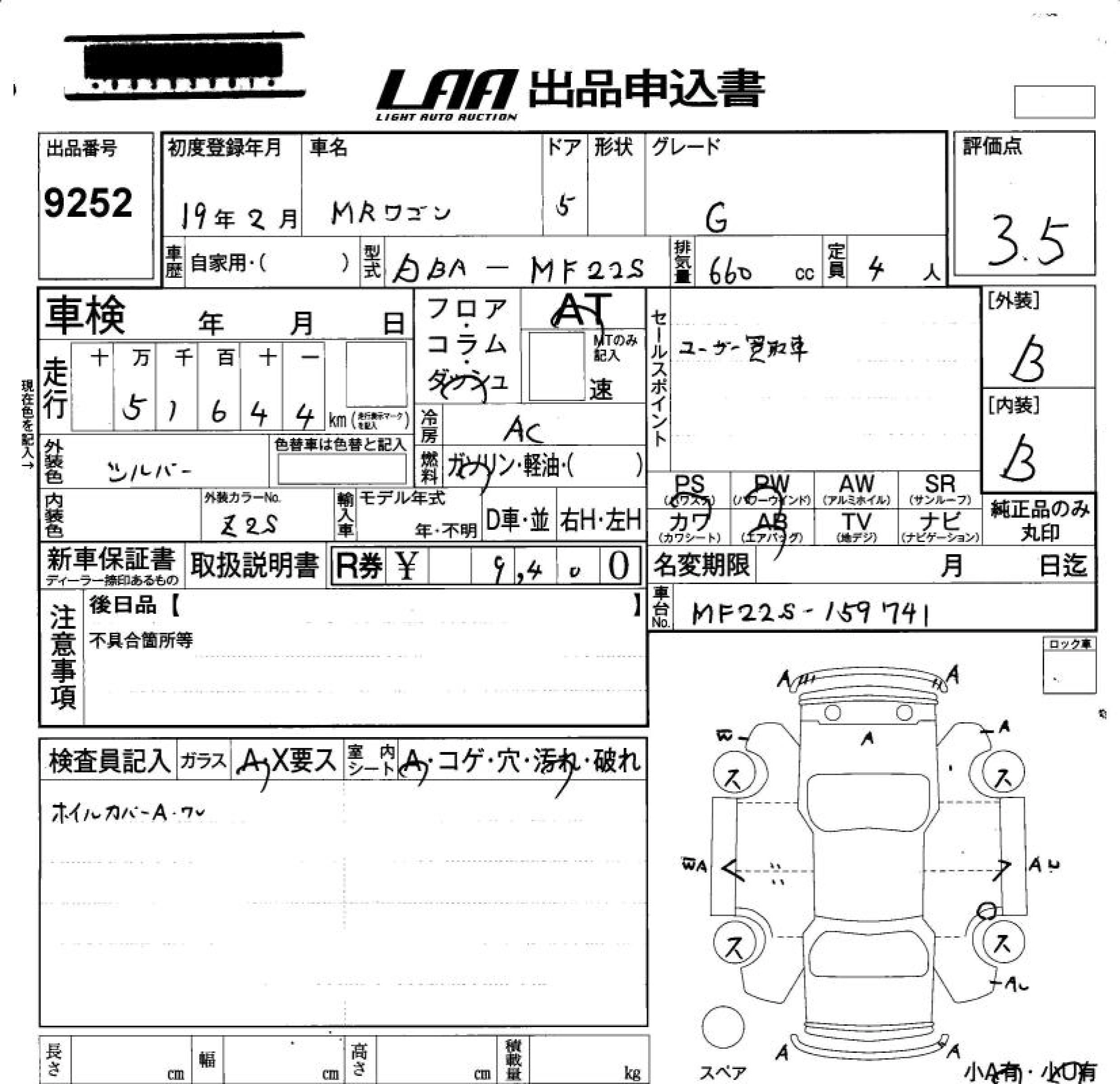 Статус продан Лот 9252 Аукцион LAA Okayama Дата аукциона 06.02.2026