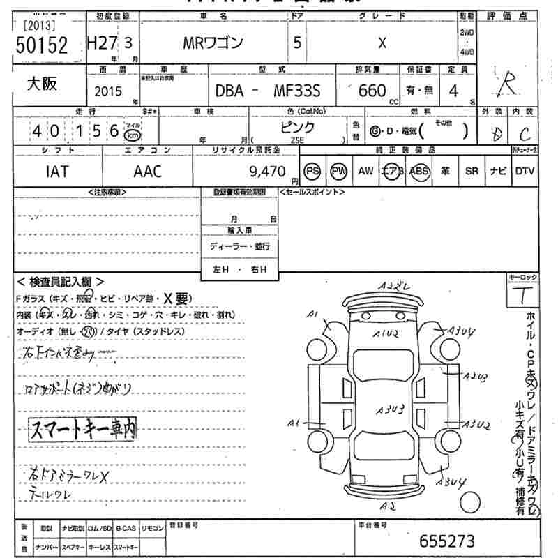 SUZUKI MRWAGON 2015 г., лот № 50152