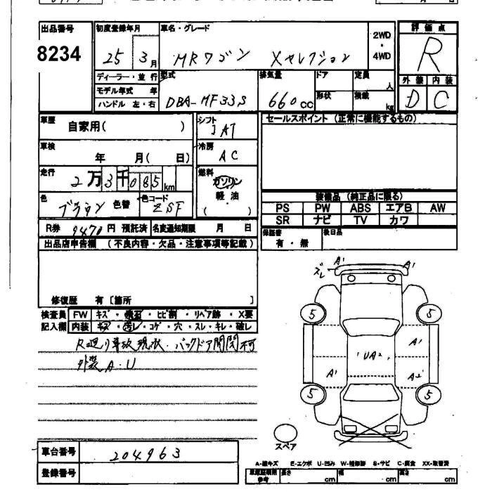 SUZUKI MRWAGON 2013 г., лот № 8234