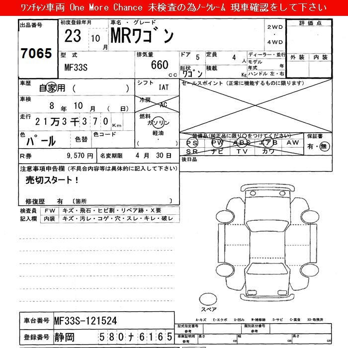 Статус выставлен на аукцион Лот 7065 Аукцион JU Shizuoka Дата аукциона 10.03.2026