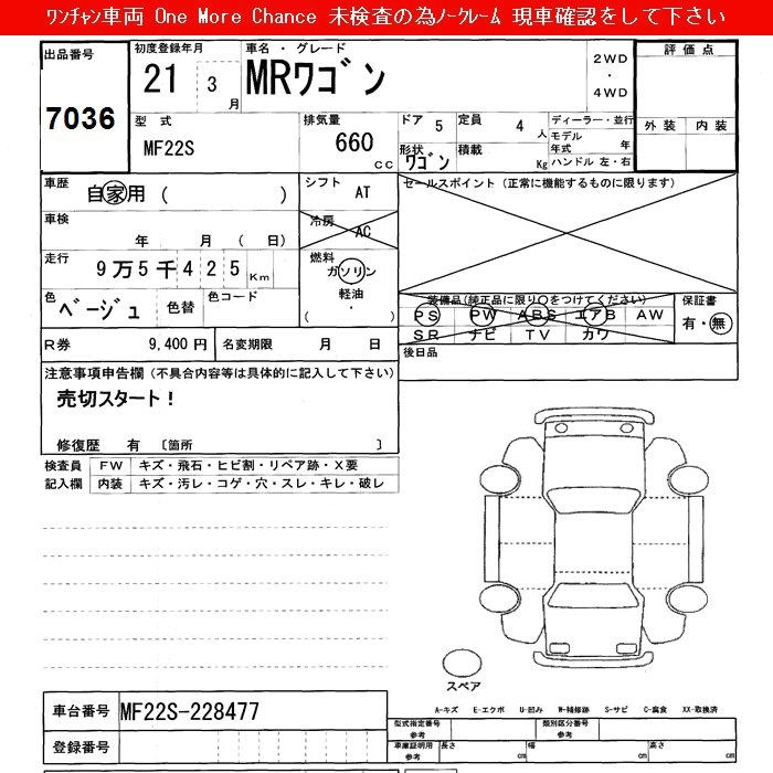 Статус выставлен на аукцион Лот 7036 Аукцион JU Shizuoka Дата аукциона 10.03.2026