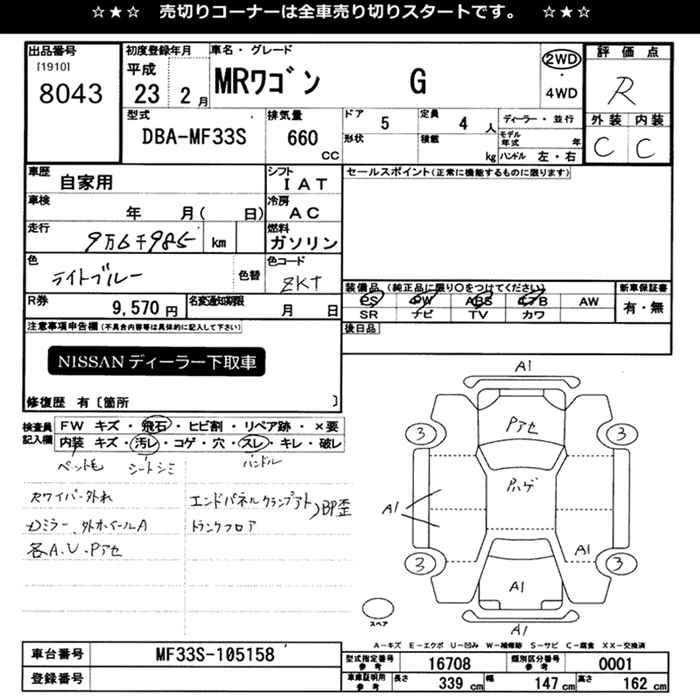 Год выпуска2011 Пробег 97 000 км КузовMF33S КомплектацияG