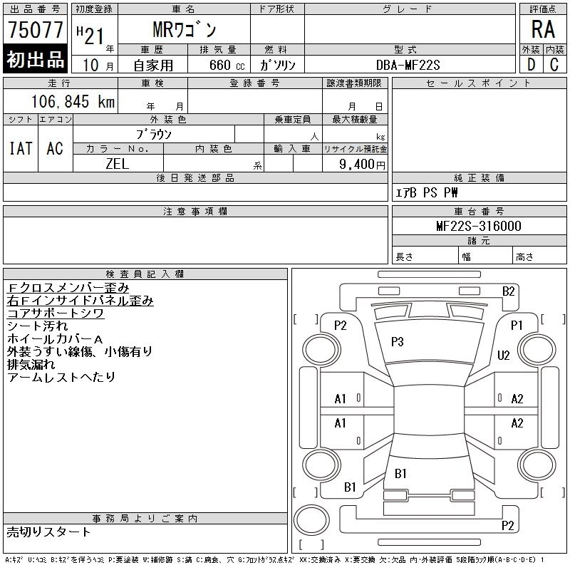 Год выпуска2009 Пробег 107 000 км КузовMF22S