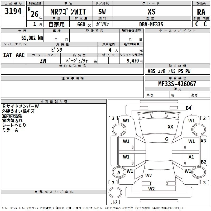 SUZUKI MRWAGON 2014 г., лот № 3194