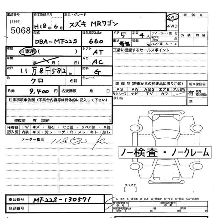 SUZUKI MRWAGON 2006 г., лот № 5068