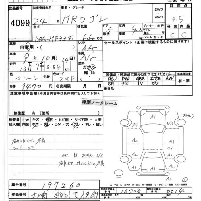 SUZUKI MRWAGON 2012 г., лот № 4099