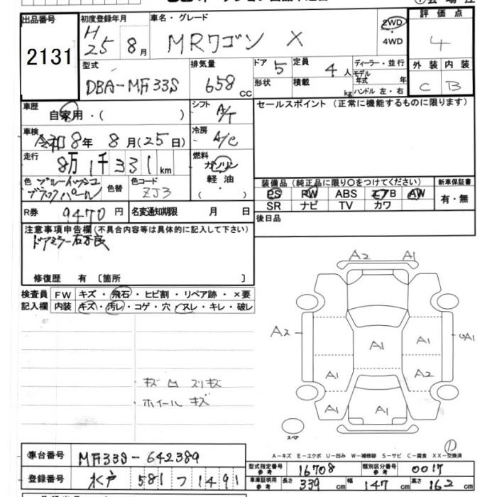 SUZUKI MRWAGON 2013 г., лот № 2131