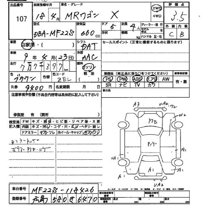 SUZUKI MRWAGON 2006 г., лот № 107