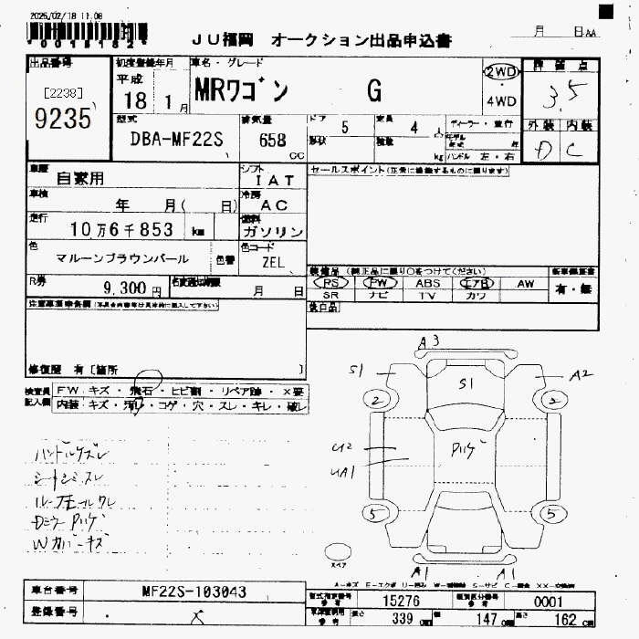 Статус выставлен на аукцион Лот 9235 Аукцион JU Fukuoka Дата аукциона 13.03.2026
