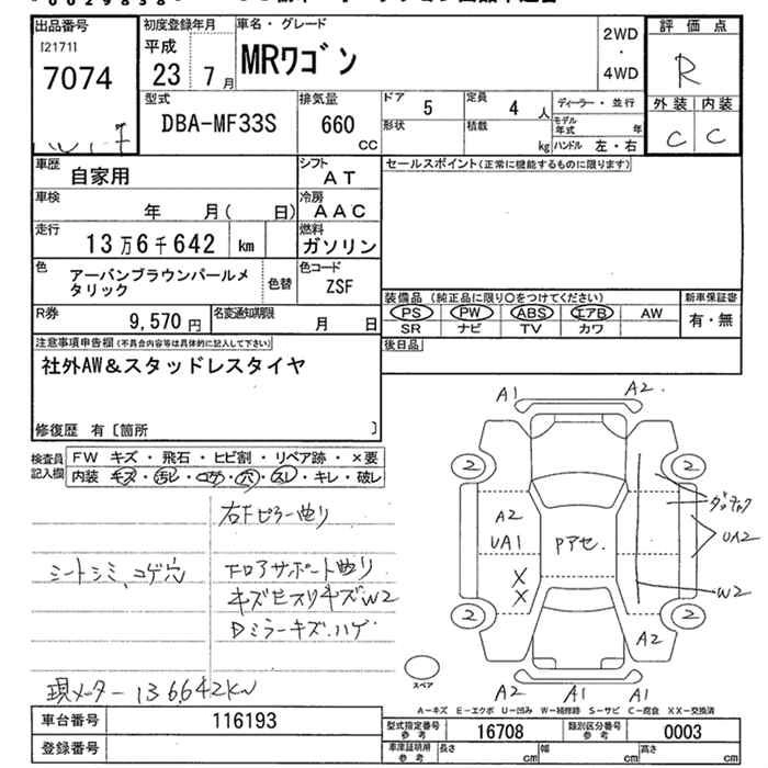 SUZUKI MRWAGON 2011 г., лот № 7074