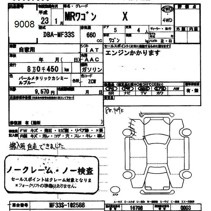 SUZUKI MRWAGON 2011 г., лот № 9008