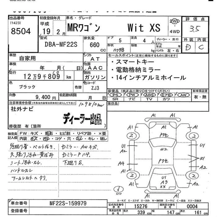Год выпуска2007 Пробег 130 000 км КузовDBA-MF22S КомплектацияWit XS 2WD