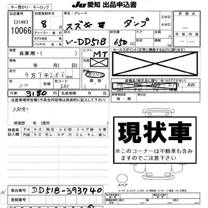 Статус выставлен на аукцион Лот 10066 Аукцион JU Aichi Дата аукциона 12.03.2026