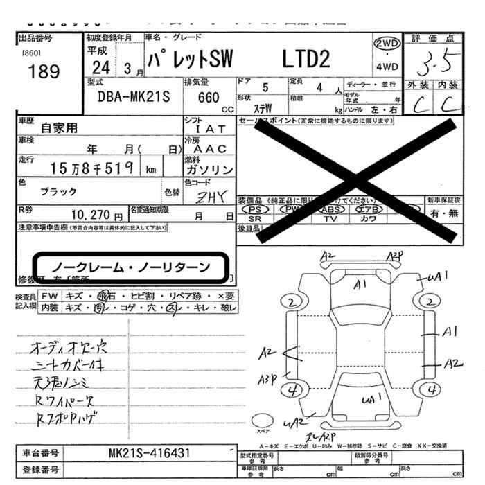 SUZUKI PALETTE SW 2012 г., лот № 189