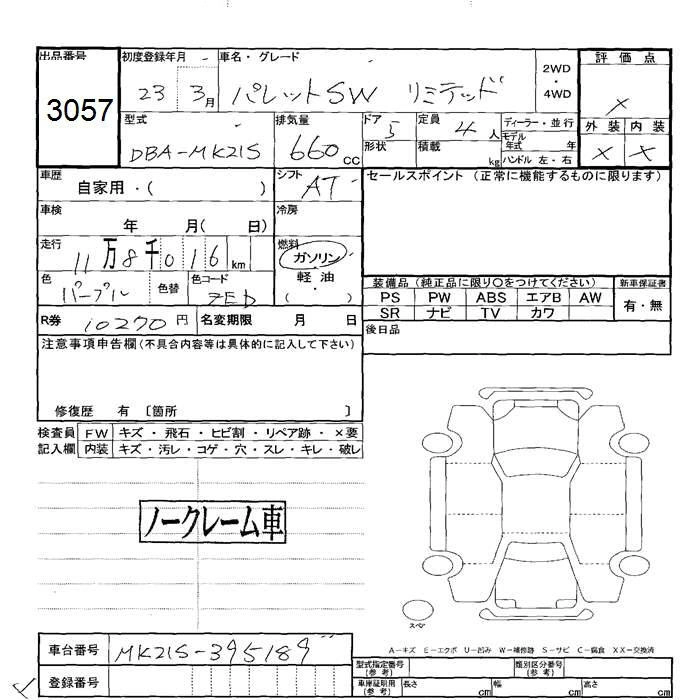SUZUKI PALETTE SW 2011 г., лот № 3057