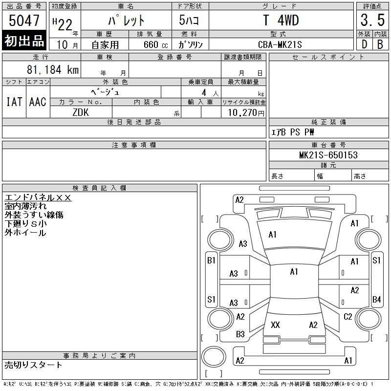 SUZUKI PALETTE 2010 г., лот № 5047