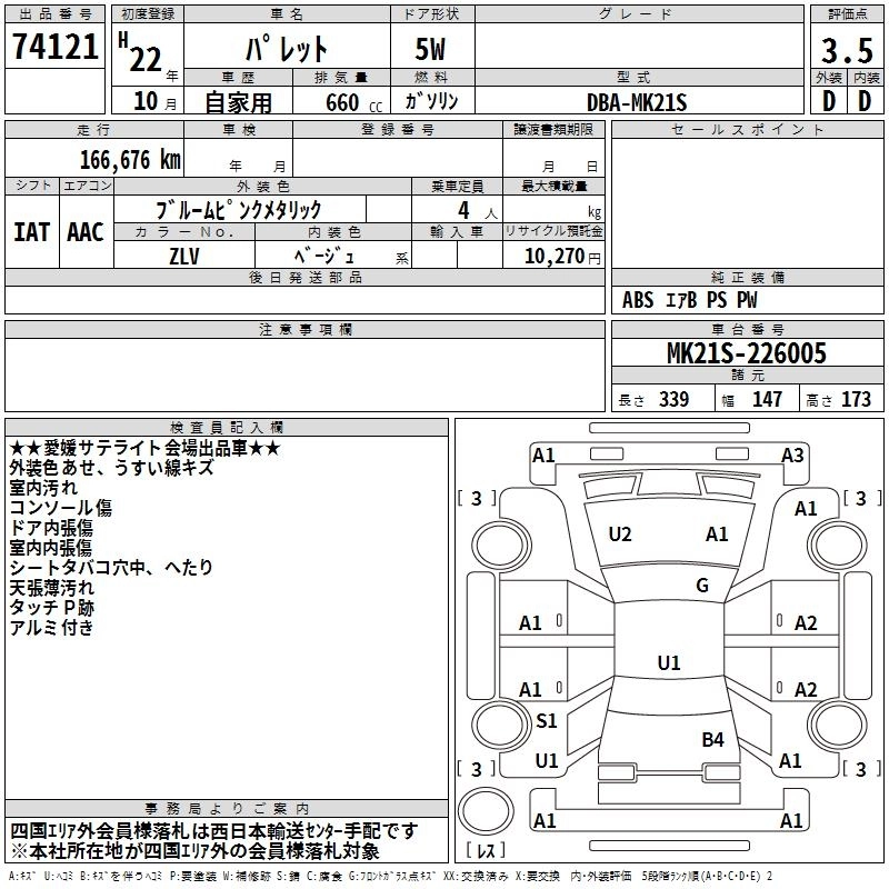 SUZUKI PALETTE 2010 г., лот № 74121