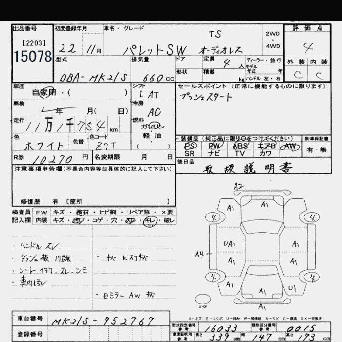 Год выпуска2010 Пробег 112 000 км КузовMK21S КомплектацияSW TS WITHOUT AUDIO