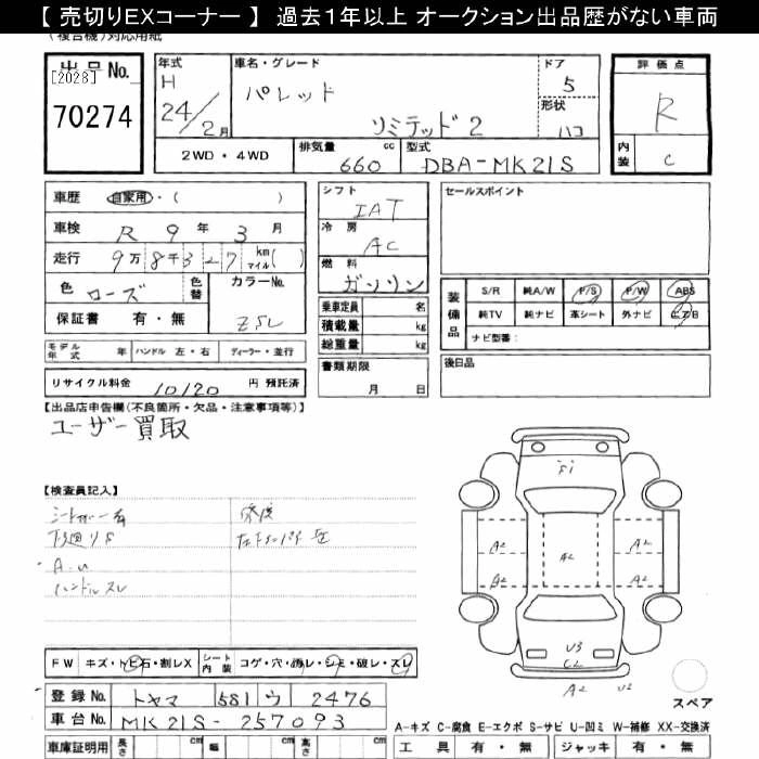 SUZUKI PALETTE 2012 г., лот № 70274