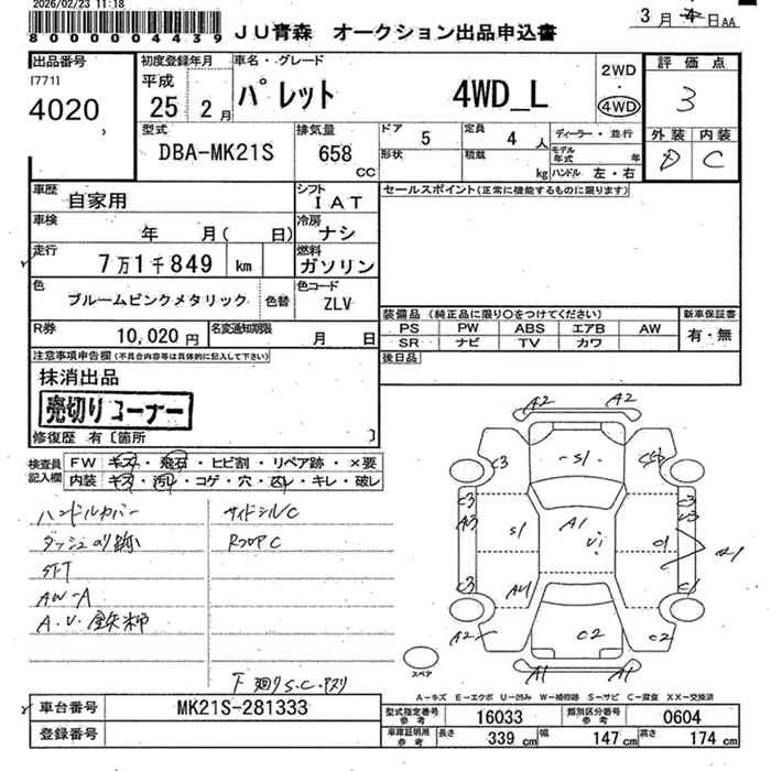 Статус выставлен на аукцион Лот 4020 Аукцион JU Aomori Дата аукциона 11.03.2026