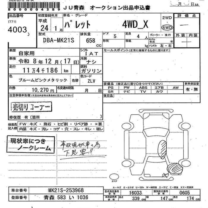Статус выставлен на аукцион Лот 4003 Аукцион JU Aomori Дата аукциона 11.03.2026