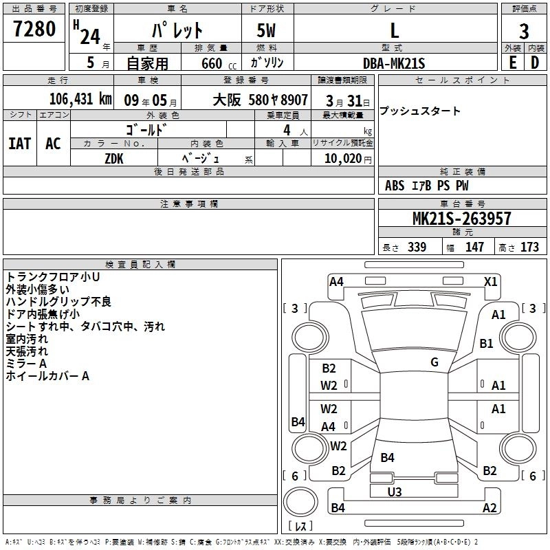 Год выпуска2012 Пробег 106 000 км КузовMK21S КомплектацияL