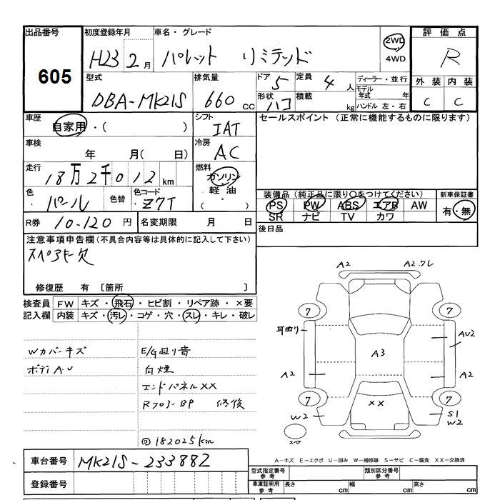SUZUKI PALETTE 2011 г., лот № 605