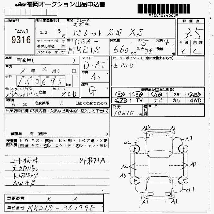 Статус не продан Лот 9316 Аукцион JU Fukuoka Дата аукциона 13.03.2026