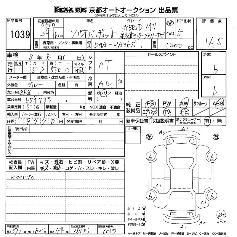 SUZUKI SOLIO BANDIT 2017 г., лот № 1039