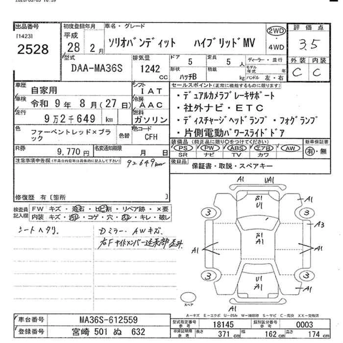 Год выпуска2016 Пробег 93 000 км КузовDAA-MA36S Комплектация HYBRID MV 2WD