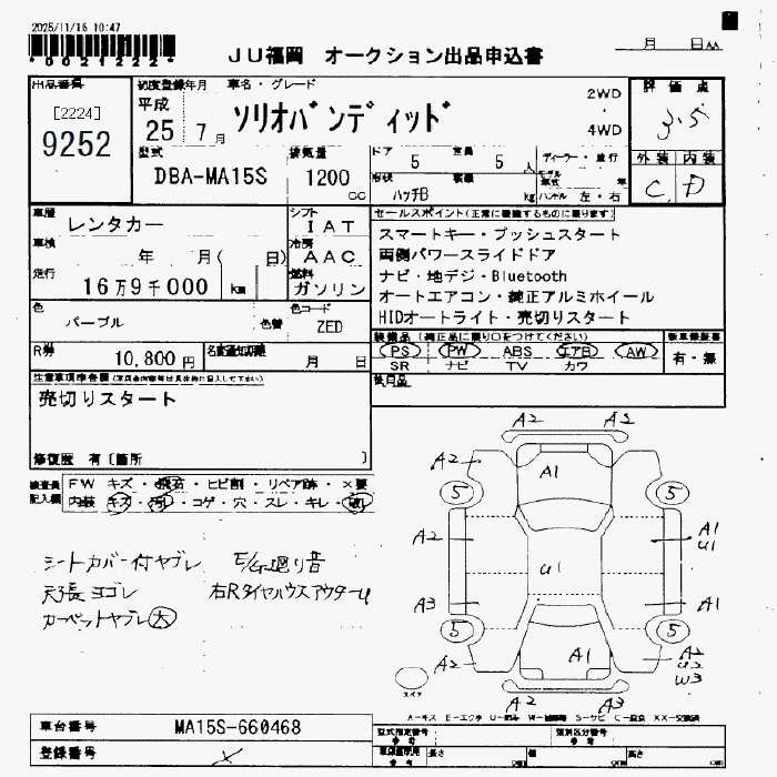 Статус не продан Лот 9252 Аукцион JU Fukuoka Дата аукциона 21.11.2025