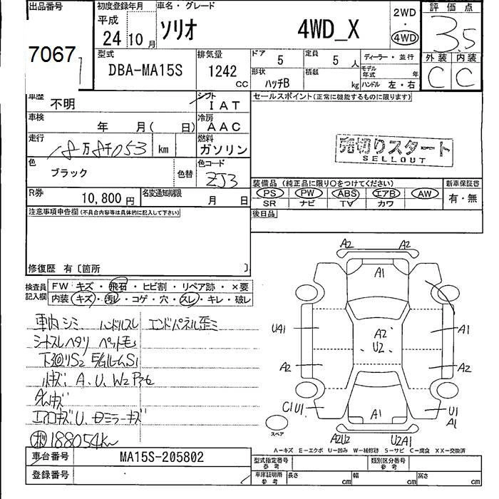 SUZUKI SOLIO 2012 г., лот № 7067