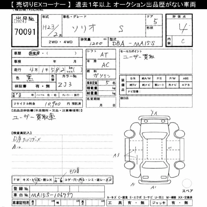 SUZUKI SOLIO 2011 г., лот № 70091