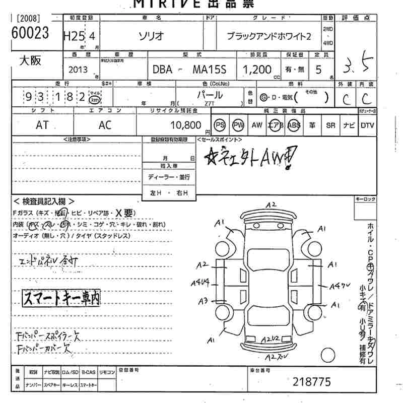 Год выпуска2013 Пробег 93 000 км КузовMA15S Комплектация BLACK ANDO WHITE 2