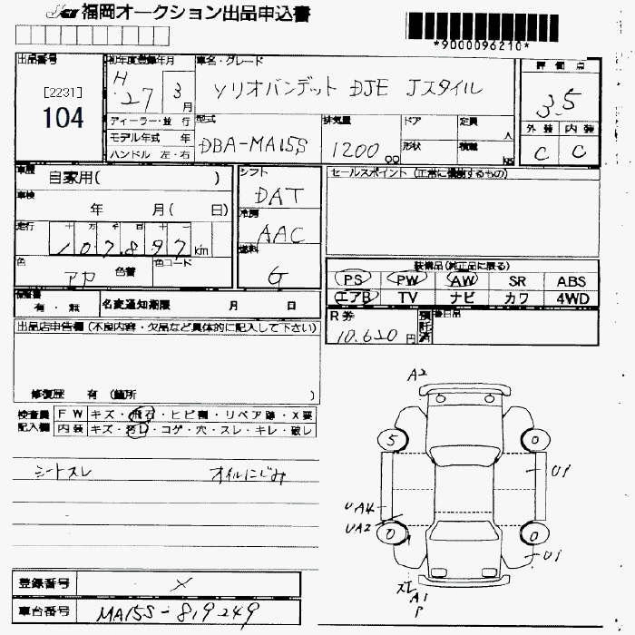 Статус продан Лот 104 Аукцион JU Fukuoka Дата аукциона 23.01.2026