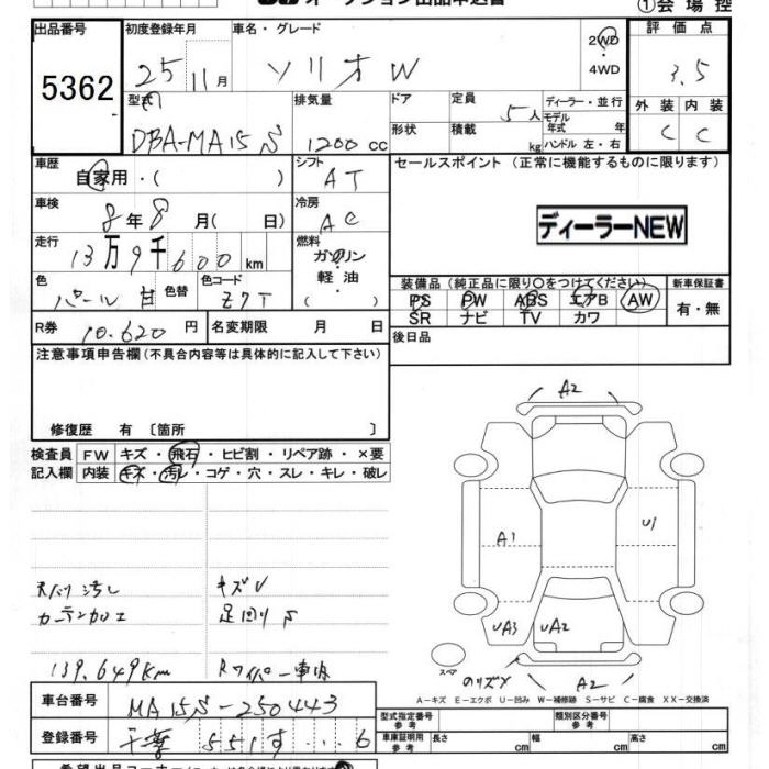 SUZUKI SOLIO 2013 г., лот № 5362